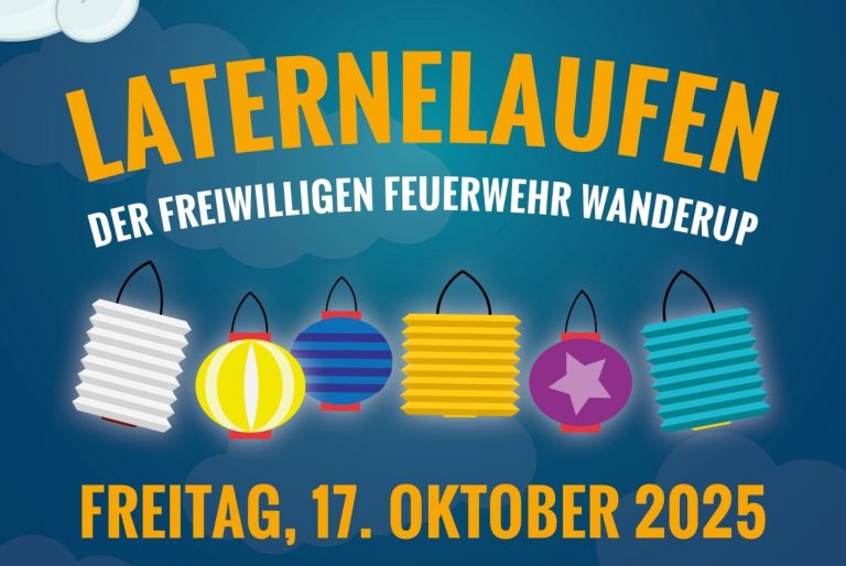 Die Freiwillige Feuerwehr Wanderup lädt Groß und Klein zum gemeinsamen Laternelaufen am Freitag, 17. Oktober 2025 ein. Um 18:30 Uhr startet der Lichterumzug an der Grundschule Wanderup.